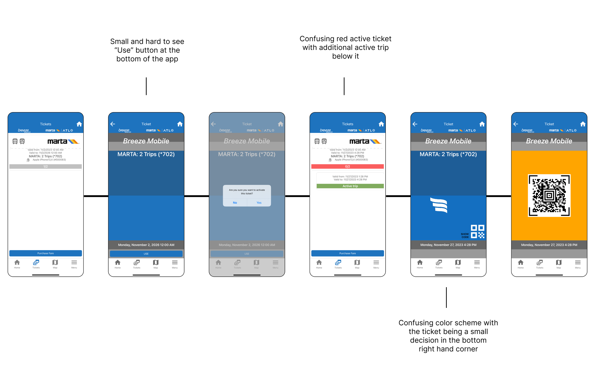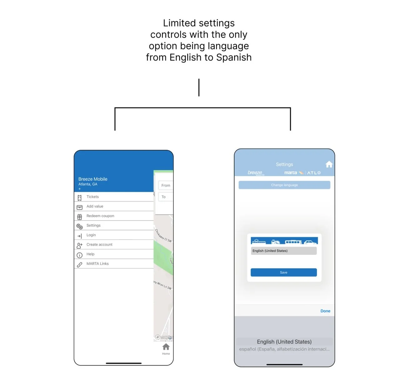 However, MARTA's mobile app, Breeze, currently poses accessibility challenges for users with visual impairments, particularly in navigating ticket purchasing due to complex submenus. Redesigning the app with a focus on inclusivity can streamline navigation and enhance accessibility, making MARTA's services more user-friendly for a broader audience.