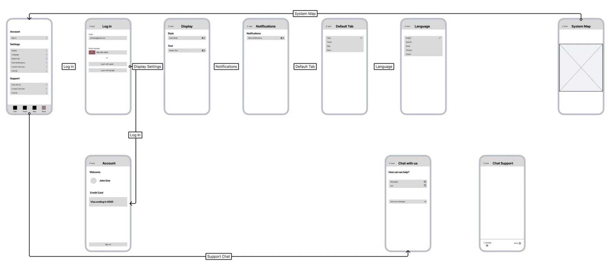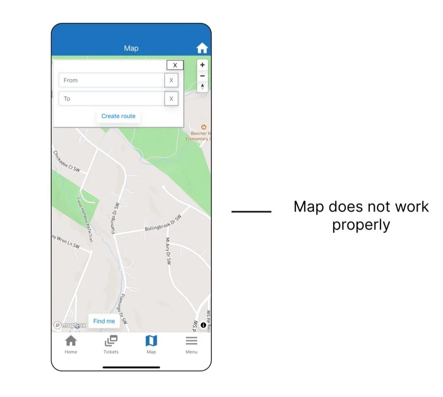 From these sessions, I mapped out the user journey to pinpoint where confusion, frustration, and drop-offs occurred — especially around ticket purchasing and real-time navigation. The following were notable pain points with the original App.
