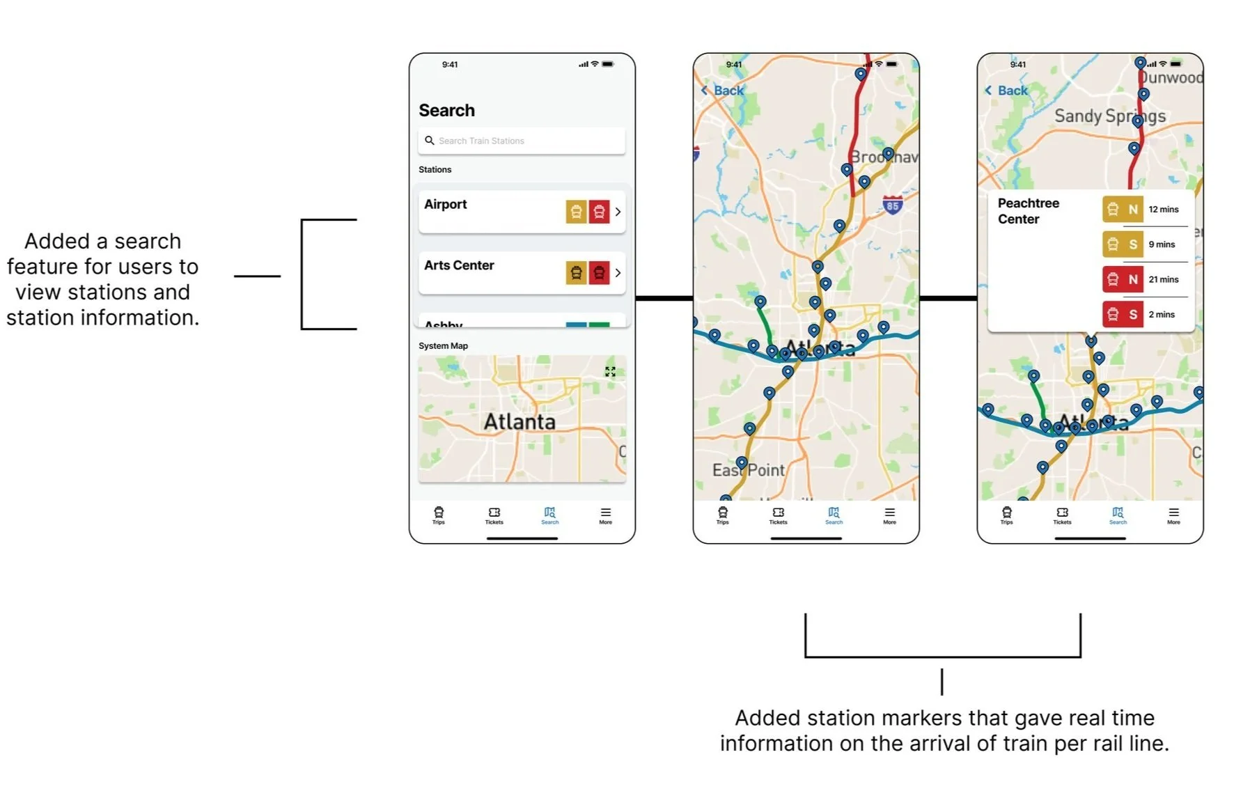 Based off of the research and goals mentioned above, I created my reenvisioning of what the Marta App could look like.